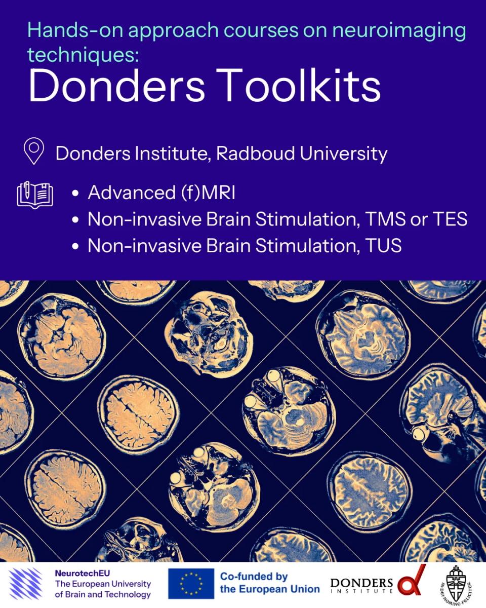 Modern nörogörüntüleme yöntemlerinde yetkinlik kazanmanıza yardımcı olmak amacıyla, Donders Enstitüsü her yıl Hollanda'nın Nijmegen kentindeki Radboud Üniversitesi'nde "Bilişsel Sinirbilim Araç Setleri (Toolkits)" sunmaktadır. Donders Toolkits programları, Donders çalışanları da dahil olmak üzere tüm araştırmacıların kaydına açıktır.